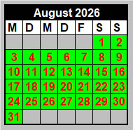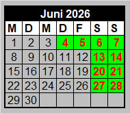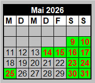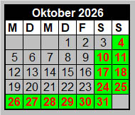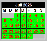 Wir freuen uns auf unsere Gäste voraussichtlich an allen grün unterlegten Tagen* jeweils zwischen 10:00 Uhr und 16:30 Uhr
